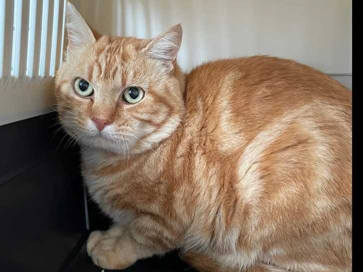 Nous sommes ravis de vous proposer à l'adoption ce chat de couleur rousse et âgé de cinq ans nommé Tacos. Celui-ci aura besoin de temps pour donner sa confiance.