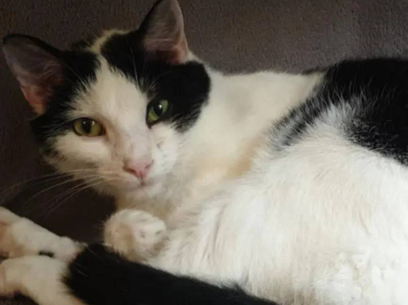 Notre association propose à l'adoption Velux, un chat au pelage noir et blanc de deux ans. Il s'entend bien avec les enfants ainsi qu'avec les chiens.