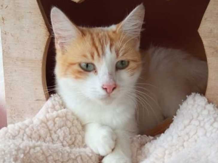 Arboré d'un pelage roux et blanc, Sybille est une chatte âgée d'un an cherchant un foyer qui lui offrira une vie heureuse. Elle s’entend bien avec ses congénères.