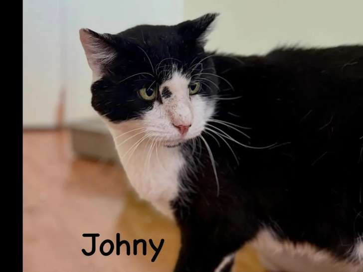 Johny est un chat au pelage noir et blanc âgé de sept ans. Calme et très tendre, il aime les moments paisibles et les caresses. Il s’entend bien avec les chats et peut vivre avec des enfants. Il préfère une vie en intérieur, dans un environnement serein.