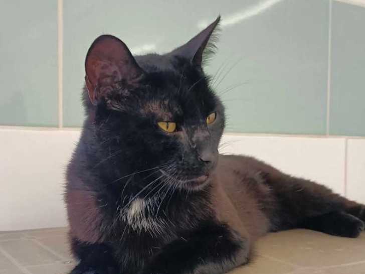 De couleur noire, Delta est une chatte âgée de trois ans qui espère trouver une famille accueillante prête à prendre soin de lui.