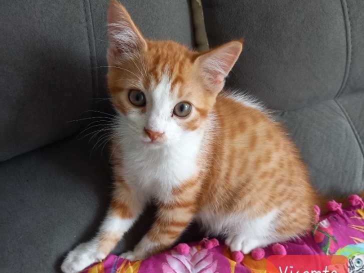 Âgé de quatre mois, Vicomte est un chaton mâle au pelage roux et blanc aspirant à trouver une famille conviviale disposant d’un jardin.