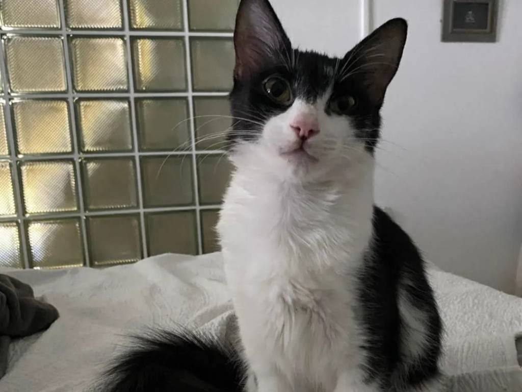 Arborant un pelage noir et blanc, Crapule est une jeune chatte âgée de six mois que nous proposons à l'adoption. Elle est propre et espère trouver une famille aimante pour la vie.