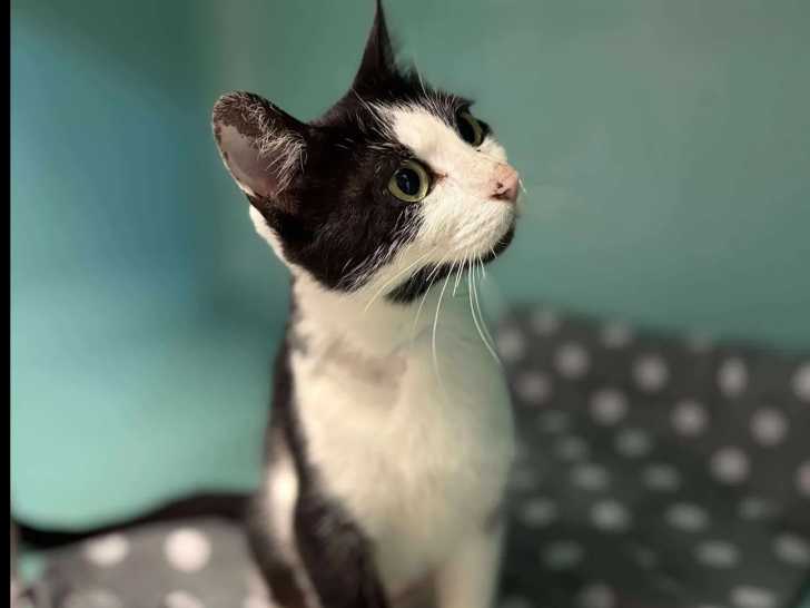 Arborée d'un pelage noir et blanc, Valentine est une jeune chatte âgée d’un an que nous avons le plaisir de vous proposer à l'adoption. Elle espère trouver une famille bienveillante qui prendra soin d'elle.