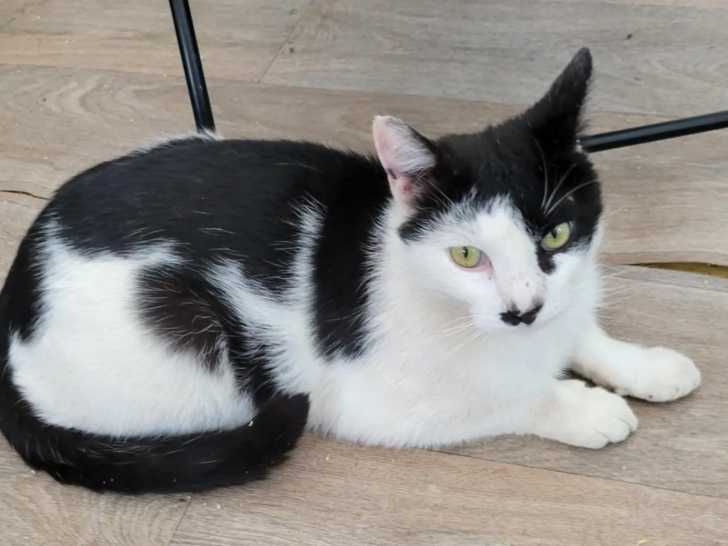 Nous vous présentons Diego, ce chat de couleur noire et blanche de quatre ans qui est disponible à l'adoption. Pour son épanouissement, un jardin est nécessaire.
