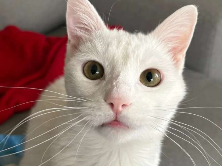 Voici Zadig, un jeune chat au pelage blanc de dix mois que nous avons le plaisir de vous proposer à l'adoption. Il s'entend bien avec ses congénères, mais est atteint du virus de l'immunodéficience féline.