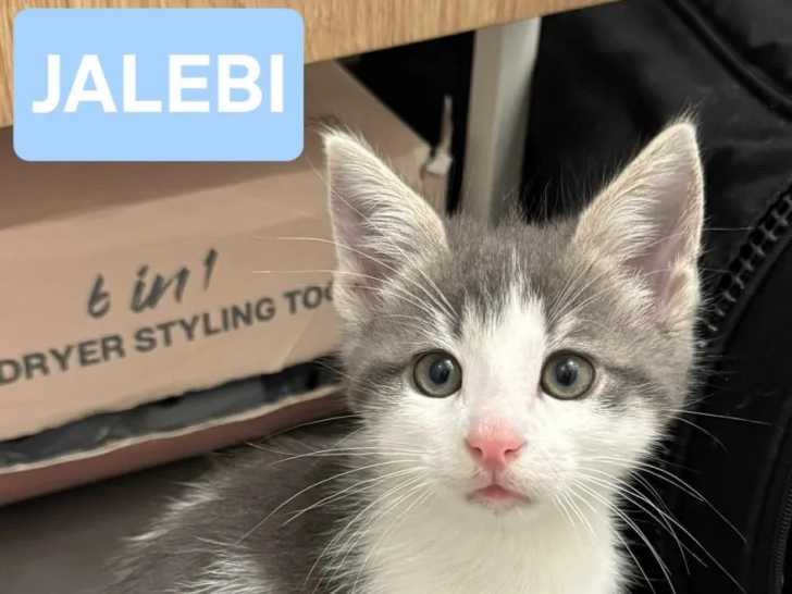 Notre association vous propose à l'adoption ces deux chatons mâles au pelage gris et blanc de deux ans nommés respectivement Jalebi et Jamun. Ils espèrent trouver un foyer aimant pour la vie.
