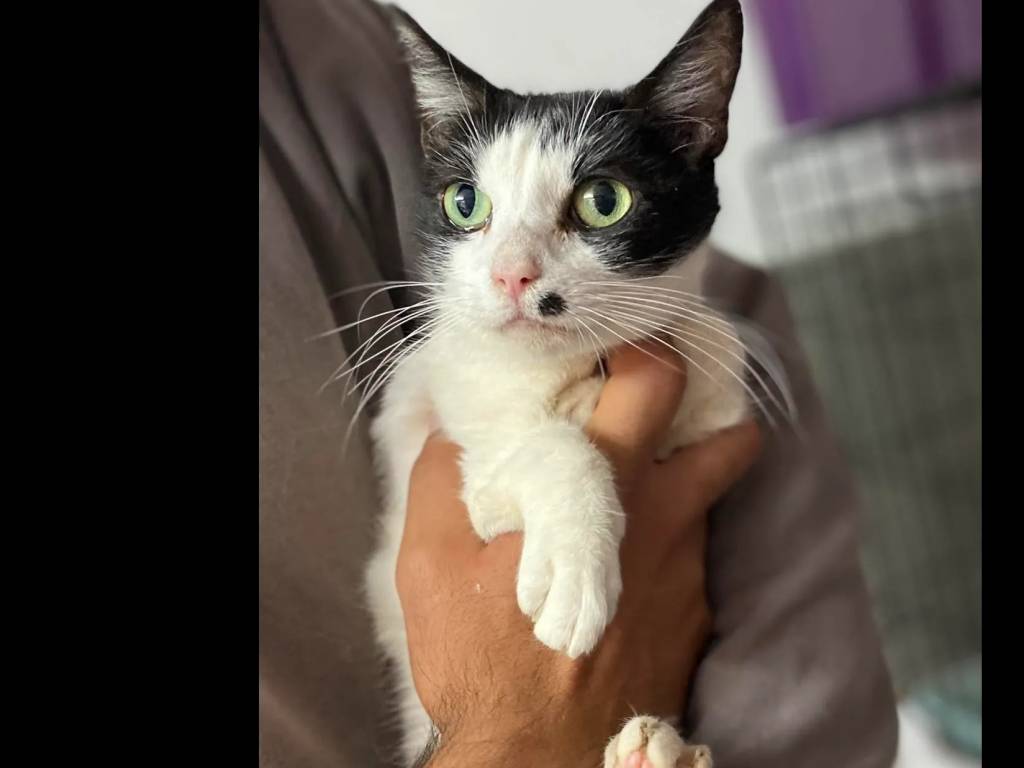 Elle s'appelle Mouche et est âgée de neuf ans, cette chatte de couleur noire et blanche qui est disponible à l'adoption chez nous. Celle-ci s’entend bien avec ses congénères, en plus d'être calme et câline.