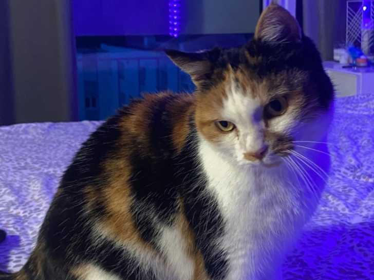Notre association vous propose à l'adoption Mya, une chatte au pelage tricolore et âgée de six ans en quête d’une famille qui prendra soin d'elle. Atteinte du virus de l'immunodéficience féline, elle ne doit pas avoir accès à l'extérieur.