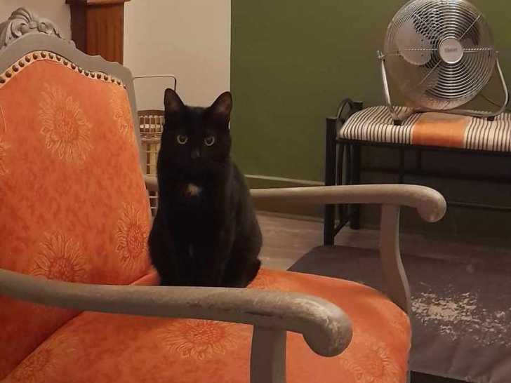 Voici Tempête, une chatte au pelage noir de quatre ans que nous mettons disponible à l'adoption. Craintive, elle aura besoin de temps pour donner sa confiance. Une famille sans enfants et ayant déjà un chat lui conviendra parfaitement.