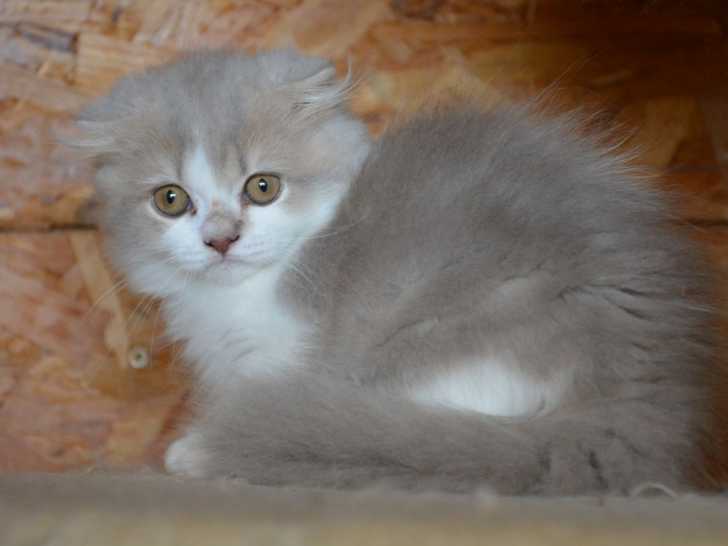 Nous mettons en vente immédiate une femelle Highland Fold au pelage blanc et beige. Cette chatonne est née dans une portée de trois le 09 juillet 2021. Sa demande d’inscription au Livre Officiel des Origines Félines (LOOF) est en cours.