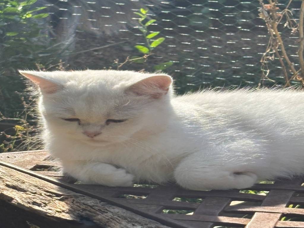 Utopia, femelle British Shorthair blanche née le 24/07/2023, recherche un amoureux sympathique qui pourra avoir le coup de foudre.