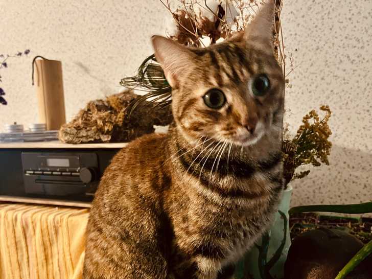 C'est une femelle stérilisée qui a environ 3 ans. Elle aime les caresses et jouer. On peut dormir avec elle la nuit si on le souhaite, elle n'est pas dérangeante. Elle fait ses besoins dans sa litière. Je ne sais pas à quel point elle peut s'entendre avec d'autres animaux. En tout cas, avec notre minette c'était compliqué, elle faisait pipi un peu partout pour marquer son territoire.