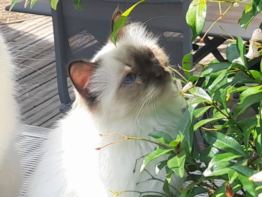 Vaïana est une jolie chatte Sacré de Birmanie de couleur chocolat point et âgée de 17 mois.
