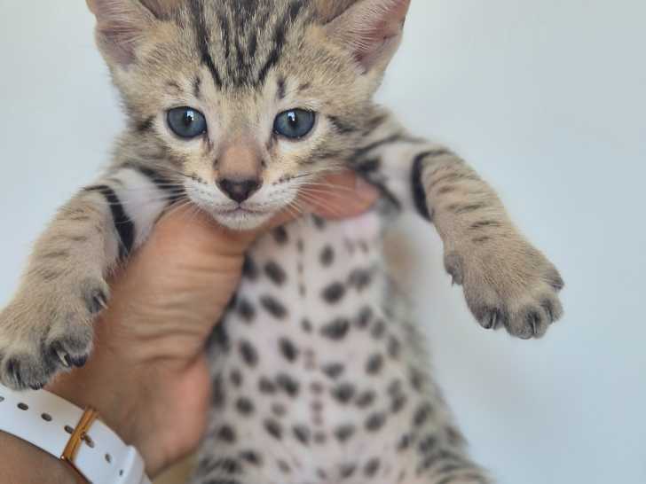 Chatons Savannah F5 disponibles Photo 1 : la femelle black spooted Photo 2 : le papa Voyou Photo 3 : la maman Vénus Nés le 11 octobre 2025, issus d’un superbe mariage entre Vénus (black spotted tabby)...