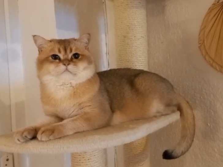 Magnifique British Shorthair Golden chinchilla aux yeux verts âgé de 1 an et demi.