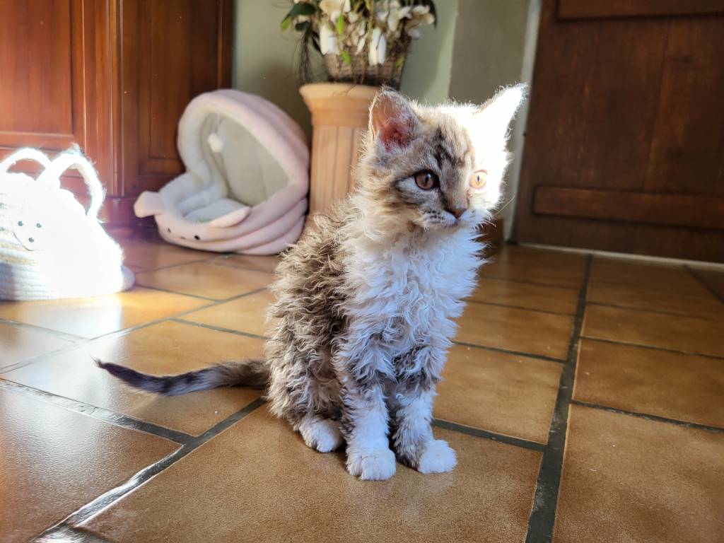 - Ambre, femelle homozygote chocolat mackerel tabby et blanc.
