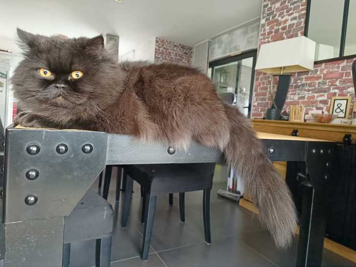 C’est un très beau mâle de couleur black avec de belles nuances et de beaux yeux jaune or. Son pelage est très soyeux et facile d'entretien. Il est très calme et aime les caresses .