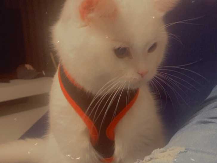 Mon chat est blanc avec des yeux bleus. Il est calme, c'est un amour, il fait trop de câlins.