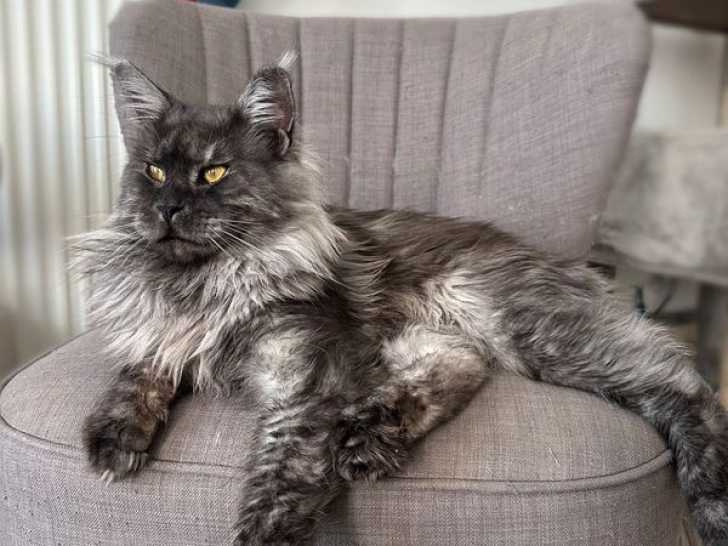 Nous sommes ravis de vous présenter notre mâle Maine Coon black smoke LOOF né le 23/04/2022 pour saillie.