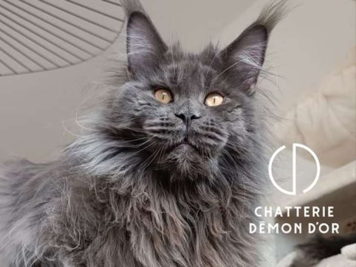 Nous proposons notre mâle reproducteur "Up and Go du Démon d'Or" pour saillie au tarif de 600 euros. Né le 9 juin 2023, ce Maine Coon bleu inscrit au Livre Officiel des Origines Félines (LOOF) possède un grand gabarit et une superbe fourrure dense.