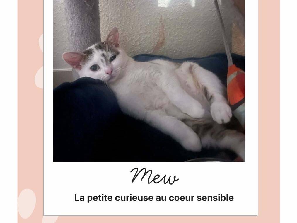 Mew, c'est la petite curieuse au cœur sensible. Elle est à adopter dans les secteurs 57 et 54. Elle a 8 mois. 🌸
