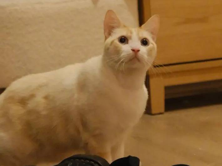 Voici Yuzu, un chat au pelage crème âgé de quatre ans. Très curieux, joueur et infatigable, il est aussi très câlin et adore se poser sur les genoux de ses humains. Il tolère très bien la présence des chiens. Yuzu est à adopter obligatoirement avec sa compagne Vivi.