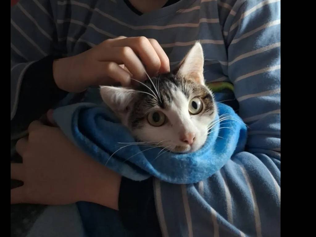 Voici Loki, un chat tigré blanc âgé de deux ans, calme, discret et observateur, qui prendra doucement confiance dans un environnement serein et affectueux.
