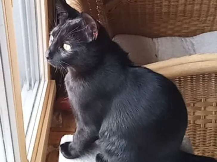 Nous mettons disponible à l’adoption Oliver, un chaton mâle noir âgé de dix mois, joueur, gentil et doté d’un pelage soyeux. Il s’épanouira dans un foyer attentif, avec des fenêtres sécurisées et sans sortie.