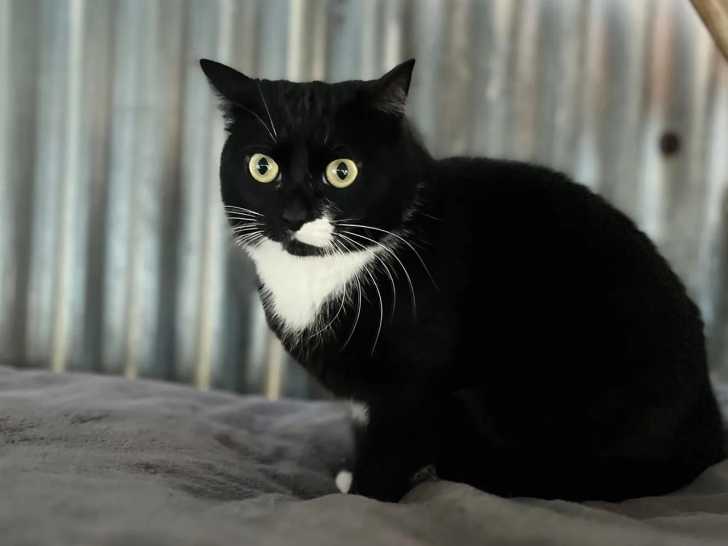 Nous vous proposons à l'adoption ce chat au pelage noir avec marque blanche de six ans nommée Telma. Craintive, elle aura besoin de temps et de douceur pour donner sa confiance.