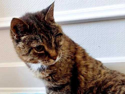 Ce chat a des problèmes de vue et d'ouïe, et a tendance à stresser en présence d’autres animaux. Il est atteint d’une insuffisance rénale.