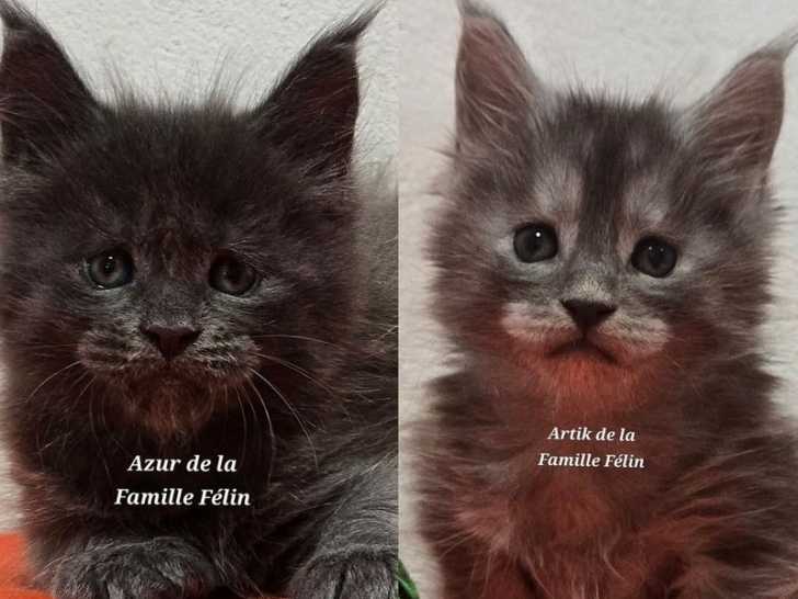 Azur et Artik sont deux jeunes mâles Maine Coon bleu smoke, inscrits dans le Livre Officiel des Origines Félines (LOOF) et issus d'une lignée de qualité. Ils ont été sensibilisés à la vie familiale dès leur plus jeune âge.