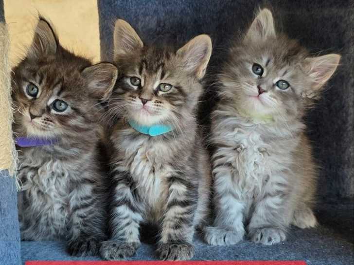 Trois chatons Maine Coons nés le 16 mars 2025 sont disponibles et inscrits au Livre Officiel des Origines Félines (LOOF). Chaque bébé est pucé, vacciné et habitué à l’élevage familial avec interactions...