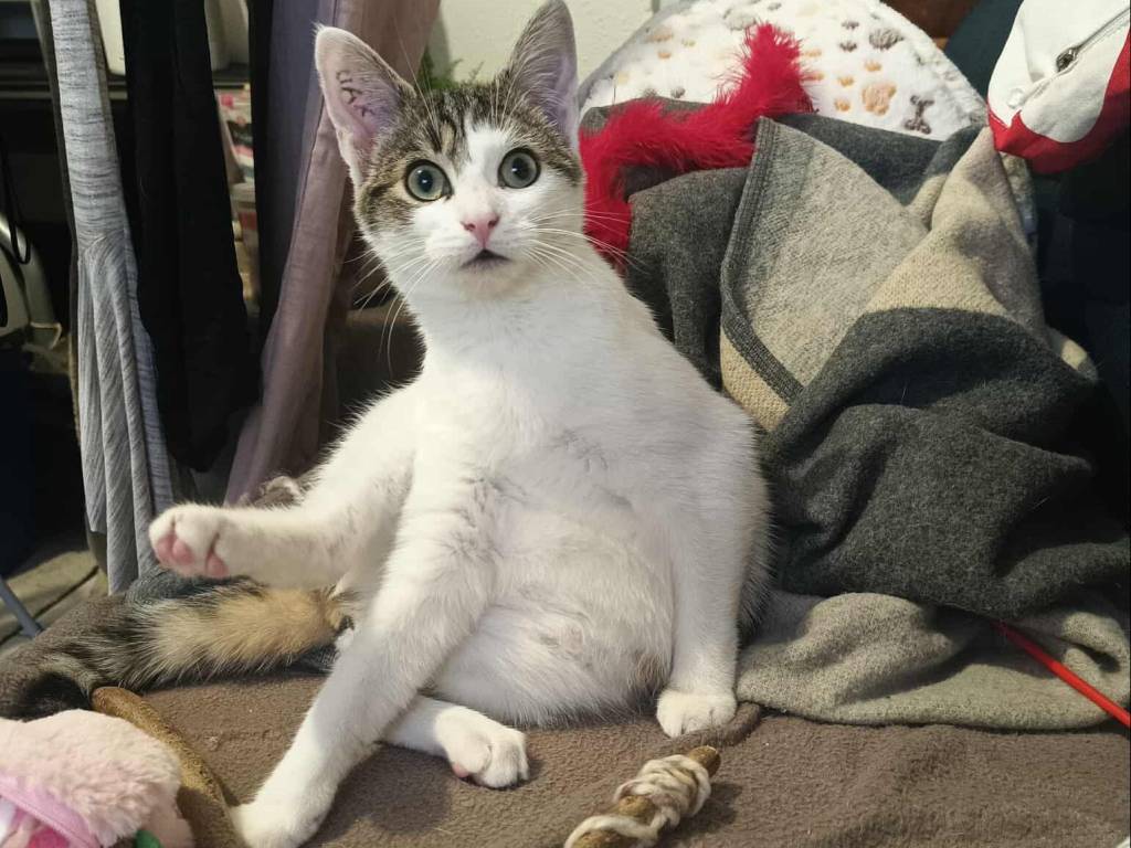 Je suis un chaton très câlin, je commence à accepter d'être pris dans les bras, je suis aussi très énergique. J'adooooore jouer, je peux courir dans tous les sens si personne n'a joué avec moi.