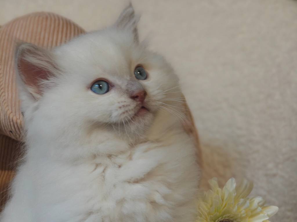 Notre centre d’élevage vous propose cette femelle Ragdoll au pelage blue soyeux. Elle est née le 21 mai 2025 et a développé une manière bien à elle de créer le lien. Elle suit nos gestes, observe longuement,...