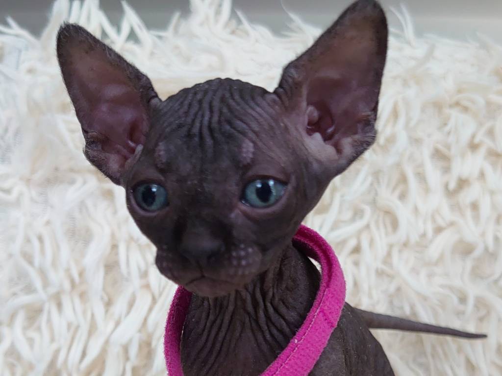 Un très beau chaton Sphynx femelle noire noire est à vendre. Elle sera prête à rejoindre sa nouvelle famille a partir du 10 novembre 2025