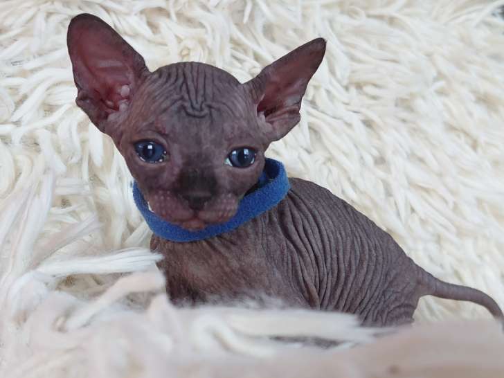 Nous proposons un superbe chaton Sphynx mâle noir à la vente. Il est né le 2 février 2026. Il sera prêt à rejoindre sa nouvelle famille à partir du 2 avril 2026. Le petit sera alors sevré, vacciné, identifié et vermifugé.