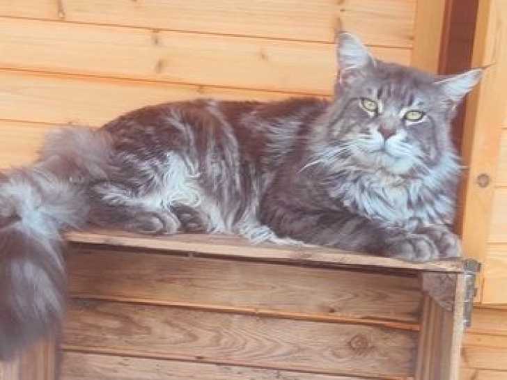 Nous, la chatterie du Domaine de Manien, avons le plaisir de vous proposer à la saillie un magnifique chat Maine Coon nommé Roméo, issu d'une portée de huit. Arboré d'un pelage black silver blotched tabby et...