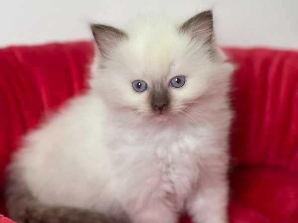 Savannah est venue au monde le 6 novembre 2021 dans une portée de 4 chatons et est dotée d’un pelage blanc. Il s’agit d’une femelle de race Ragdoll qui ne pourra partir qu’à partir du 4 février 2022.
