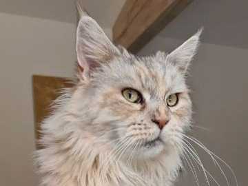 A-Perle, femelle Maine Coon blanche aux yeux bleus est disponible à la réservation. Née le 16 juillet 2025, cette magnifique petite au tempérament très doux est issue de parents russes testés sains. La...