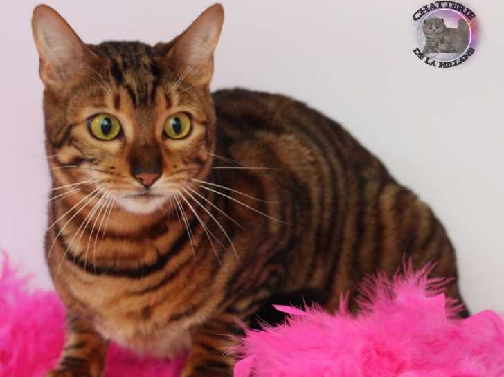 Nous sommes heureux de vous présenter une chatonne Toyger disponible à l’élevage des Toygers Bellille, née le 10 mai 2024. Bientôt âgée d’un an, notre jeune chatte est issue du mariage entre Naya Savanecat...