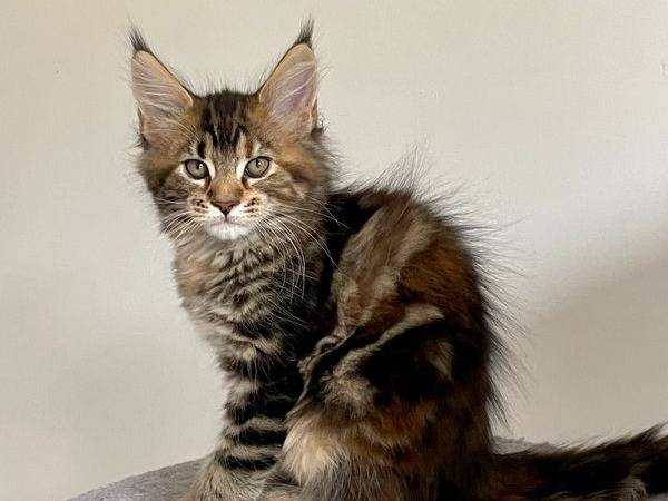 Sur une portée de cinq chatons Maine Coons nés le 25 juillet 2025, il reste cinq bébés à vendre. Nous proposons trois mâles et deux femelles de couleur bleu, brown et black silver blotched tabby.