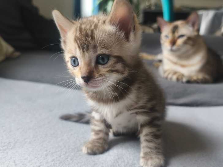 Une portée de deux chatons Bengals mâles est née le 17 septembre 2025 dans notre élevage La Bengalerie d'Ange. Ces black silver tabby et brown tabby pourront rejoindre leurs familles mi-décembre. Nos petits...