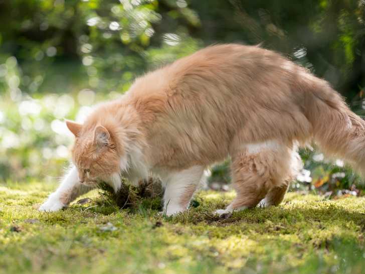 En effet, ils recherchent généralement pour cela un coin de terre (ou éventuellement de sable), qu'ils creusent légèrement pour s'y soulager. Puis, une fois que cela est fait, ils recouvrent soigneusement leurs déjections (urine et/ou crottes) avant de s'en aller. Il s'agit d'un comportement instinctif qu'ils ont conservé de l'époque où ils étaient encore sauvages : qu'il s'agisse des chats ou des autres espèces, les félins ont en effet pour habitude d'enterrer leurs besoins afin de masquer leur odeur, car cela limite les chances de se faire repérer par des prédateurs.