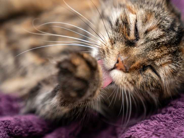 Une toilette aussi minutieuse que celles que font les chats est assez atypique : on rencontre ce comportement chez les autres félins, mais peu chez les autres mammifères.