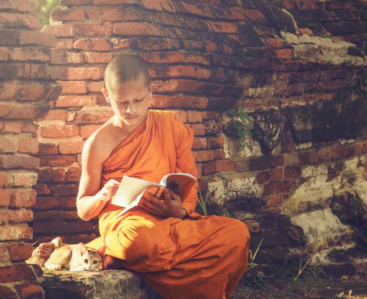 Les textes majeurs du bouddhisme ne mentionnent jamais les chats. Pourtant, ces derniers sont depuis longtemps présents dans les communautés bouddhistes : il n’est pas rare d’en voir vagabonder dans les temples, ou à proximité de ces derniers.