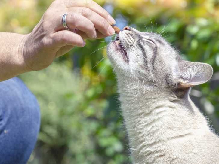 Une fois que le maître est parvenu à identifier la récompense qui plaît le plus à son chat, il doit apprendre à la lui donner de la bonne façon, afin de maximiser les chances d'obtenir un résultat.