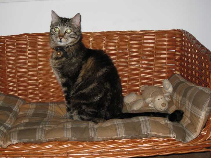 Esther est une petite chatte d'environ 5 ans, elle a rejoint notre foyer il y a peu, elle venait de la SPA qui elle même l'avait reçu d'un refuge du sud de la France qui fermait ses portes il y a 4 ans. Aujourd'hui, elle sert de copine de jeux à Ange et de dopine de dodo à D'Jack. Sur cette photo, elle avait posé dans le lit de D'Jack. C'est une adorable pitchounette avec elle aussi une santé fragile, on en prend soin, elle joue depuis pas très longtemps, elle a vraiment besoin d'avoir confiance. Elle aime tous les membres de la famille et n'est pas farouche pour un sous, bien au contraire !!! Une véritable perle !