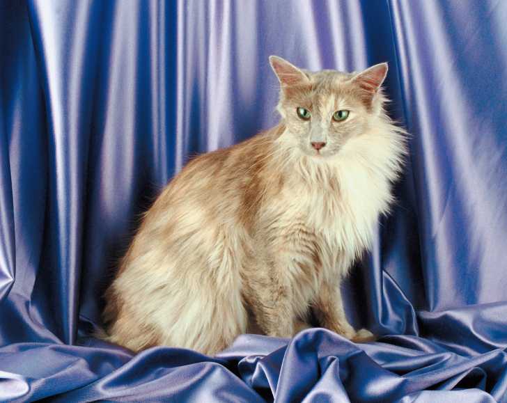 Un chiot Teckel mécontent qu'un chat Angora utilise son panier