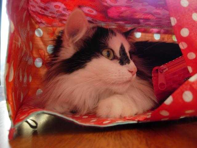 Mercredi adore se cacher dans les cabas, les sacs à mains, bref tout ce qui ressemble à un sac!